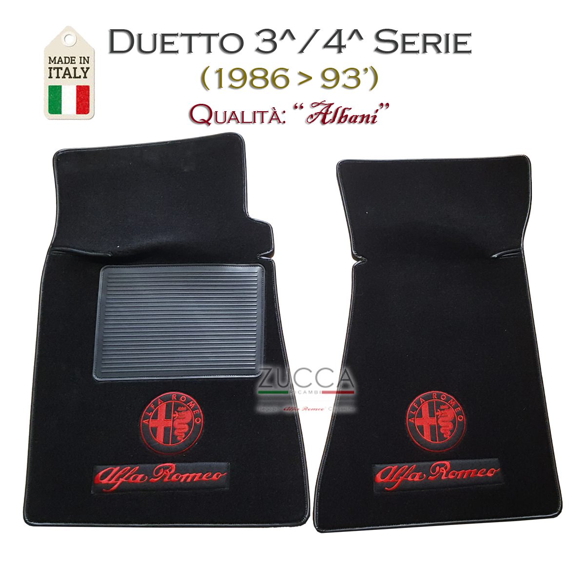 Tappetini (Duetto 3/4 – 1986-93) Neri / Logo Rosso – Qualità “ALBANI”
